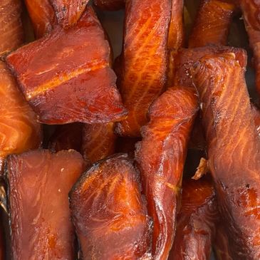 We source only wild caught, flash frozen sockeye salmon from Alaska. Our preparation involves brining in a proprietary mix of spices, infusing the fish with a unique flavor profile. Smoked with a custom blend of alder, cherry and apple wood chips, the finished product delivers a mouthwatering explosion of flavor.
